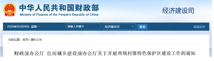 近日,财政部办公厅、住房城乡建设部办公厅两部门联合发布《关于开展传统村落特色保护区建设工作的通知》,要求全面总结前期传统村落集中连片保护利用工作成效,进一步强化中央指导,加强跨省域统筹。2026–2028年,中央财政安排补助资金,支持部分基础条件好、积极性高、特色突出的县(市、区、旗,以下统称县),开展相应主题的传统村落特色保护区建设工作,打造一系列优秀的国家级文化名片,推动优秀传统文化创造性转化、创新性发展,让根植于农耕文明的中华文明生生不息。
