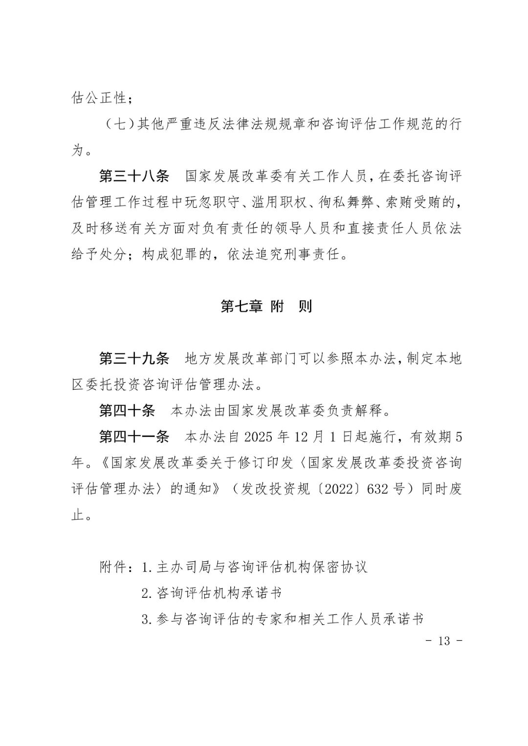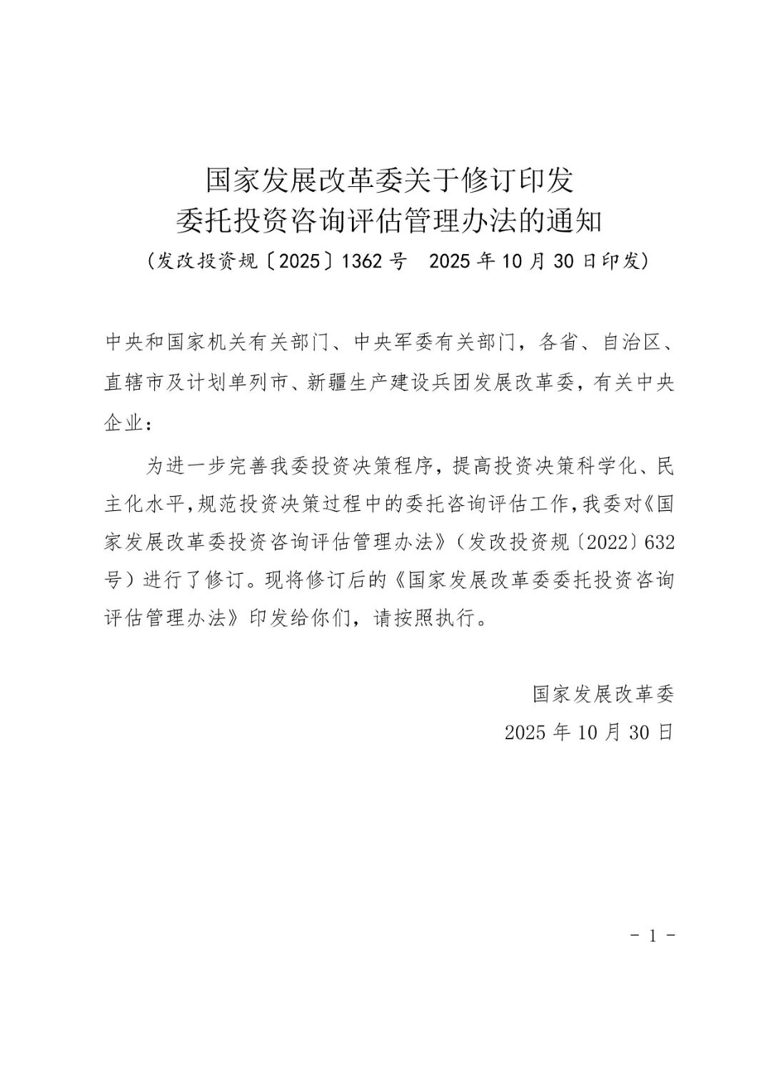 《国家发展改革委投资咨询评估管理办法》(发改投资规〔2025〕1362号)